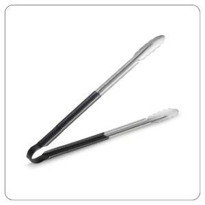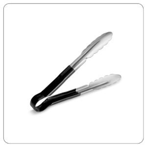 Black Coated Handle Stainless Steel Scalloped Tongs 12″