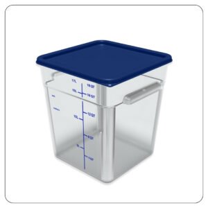 Clear Square Polycarbonate Food Storage Container and Blue Lid 18 Qt