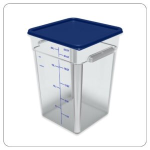 Clear Square Polycarbonate Food Storage Container and Blue Lid 22 Qt