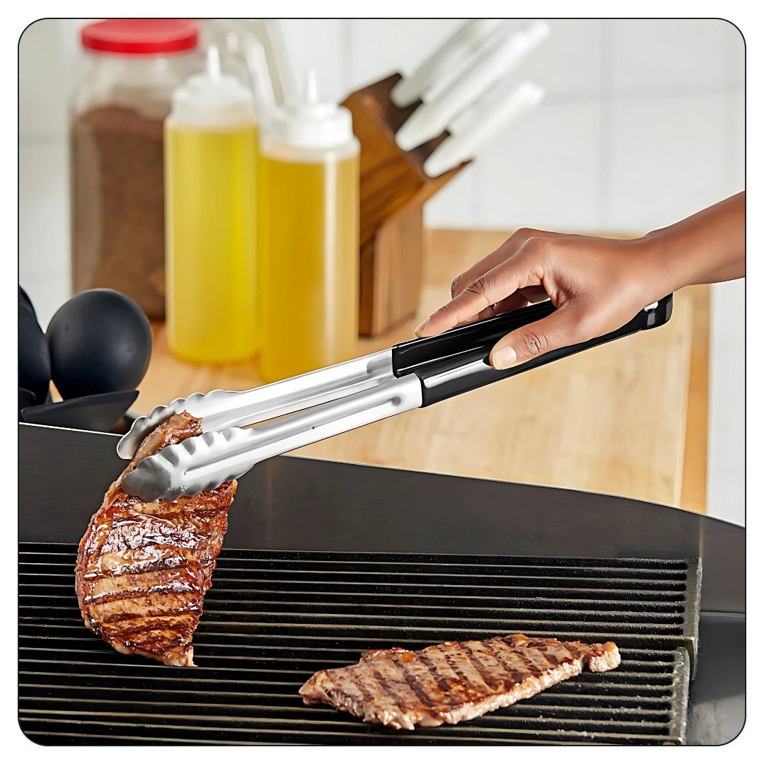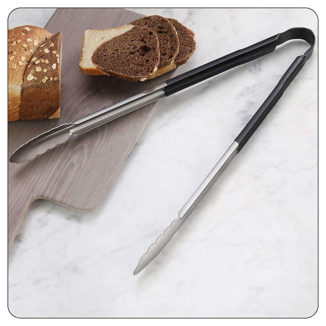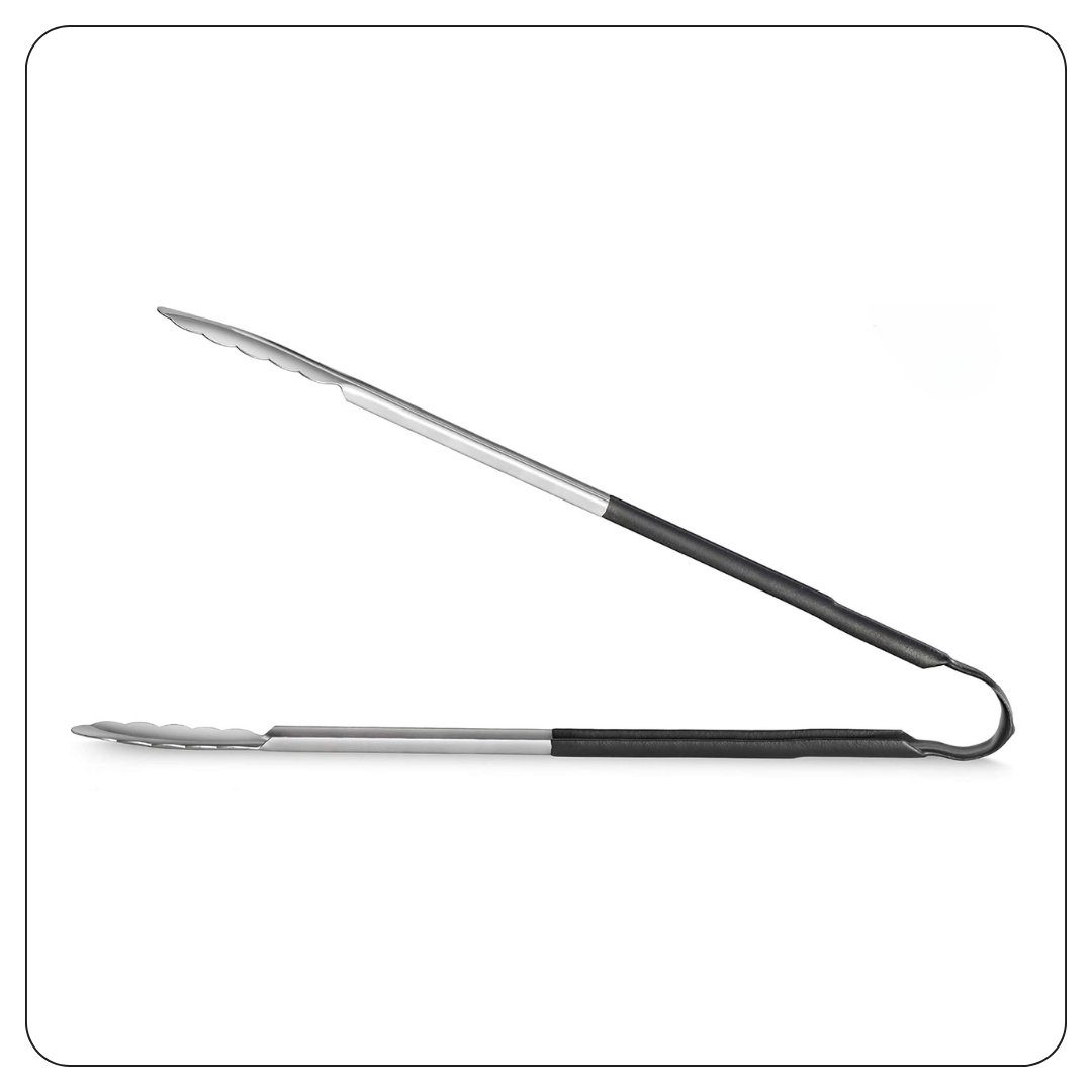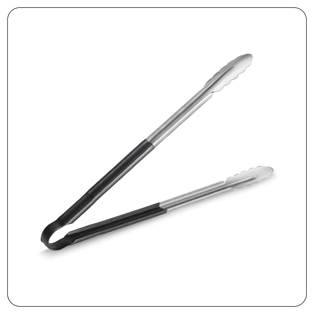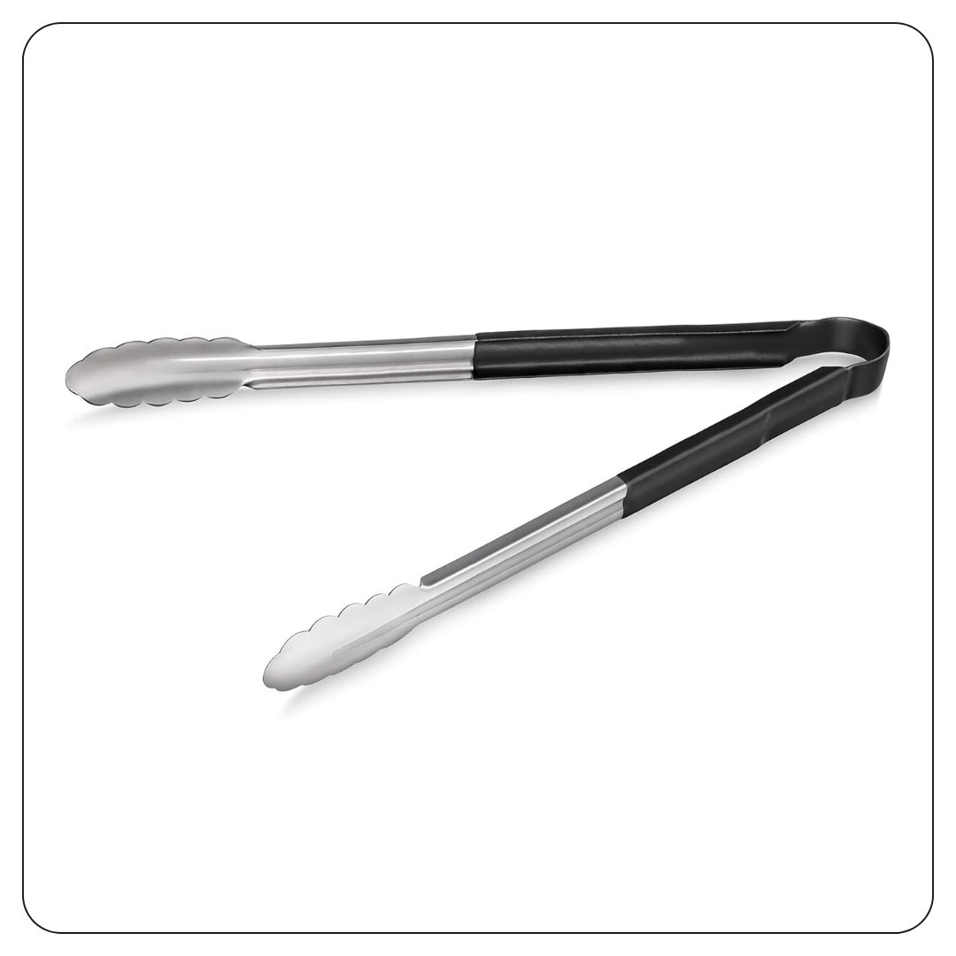 Black Coated Handle Stainless Steel Scalloped Tongs 16″