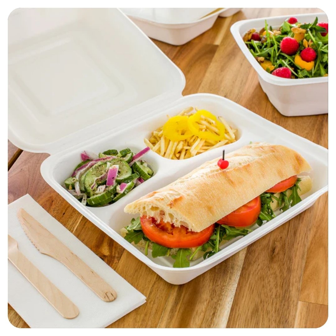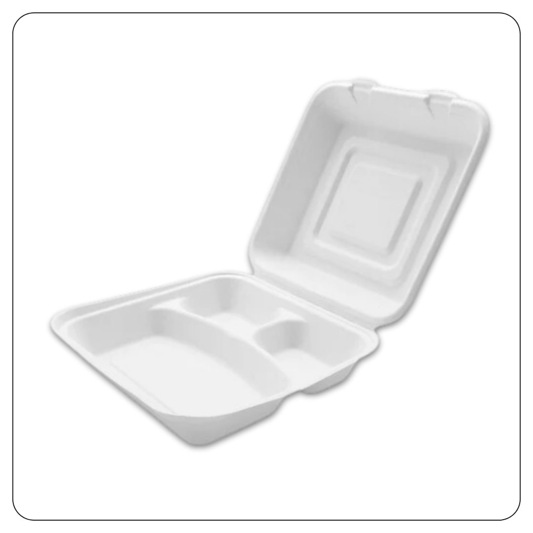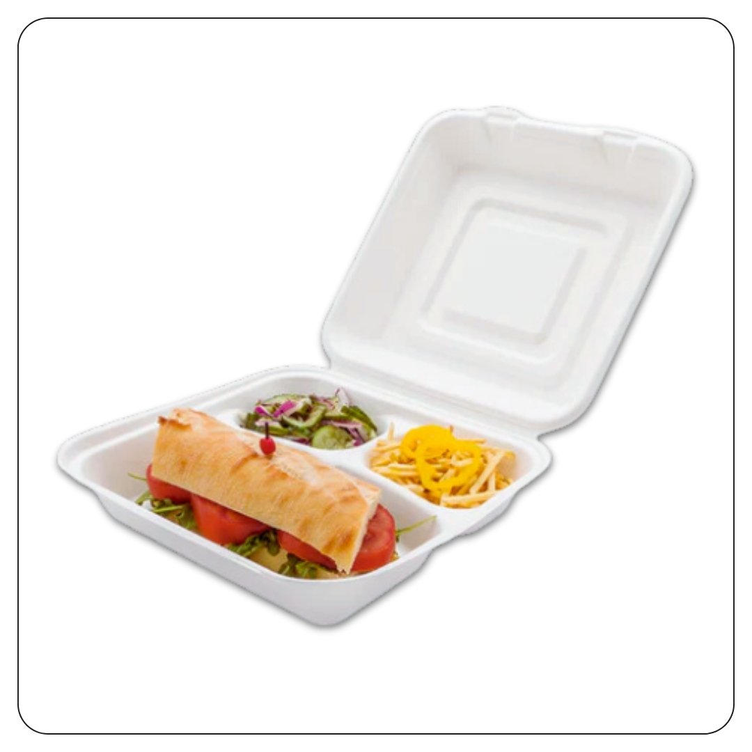8x8x1 / White Large Hinged Lid / 3 Compartment Foam Containers