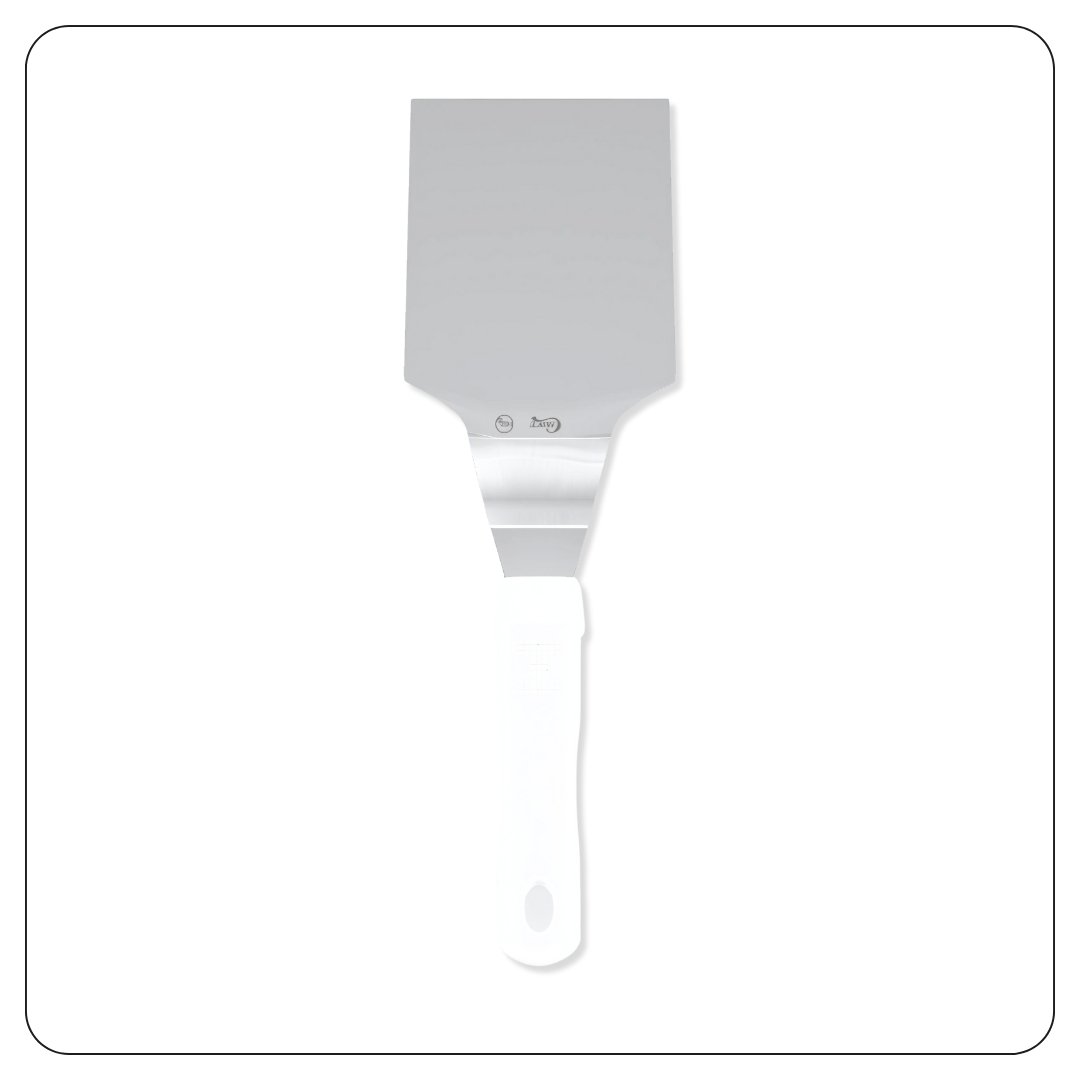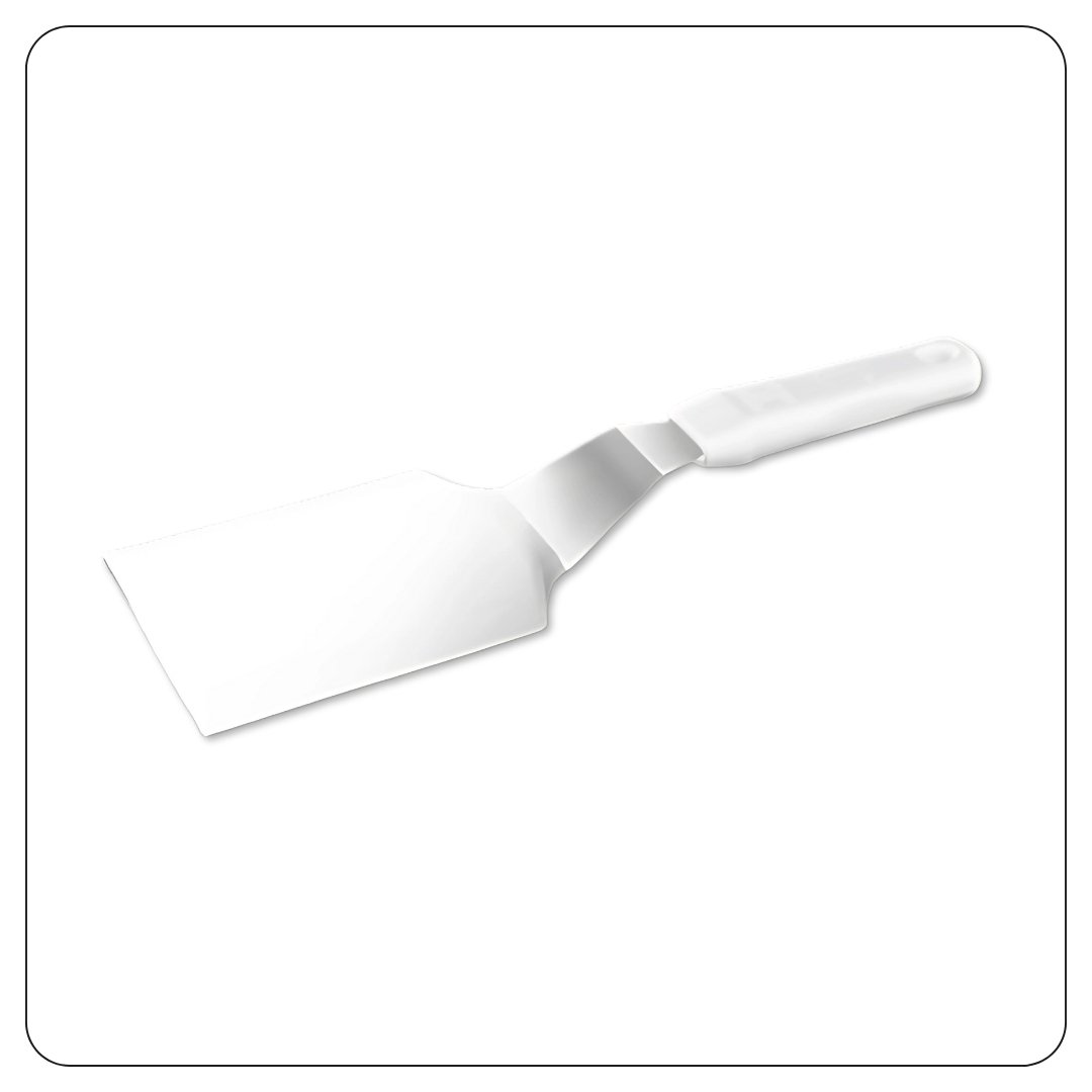 Be the first to review “Beveled Square Edge Turner with White Polypropylene Handle 5″x4″”