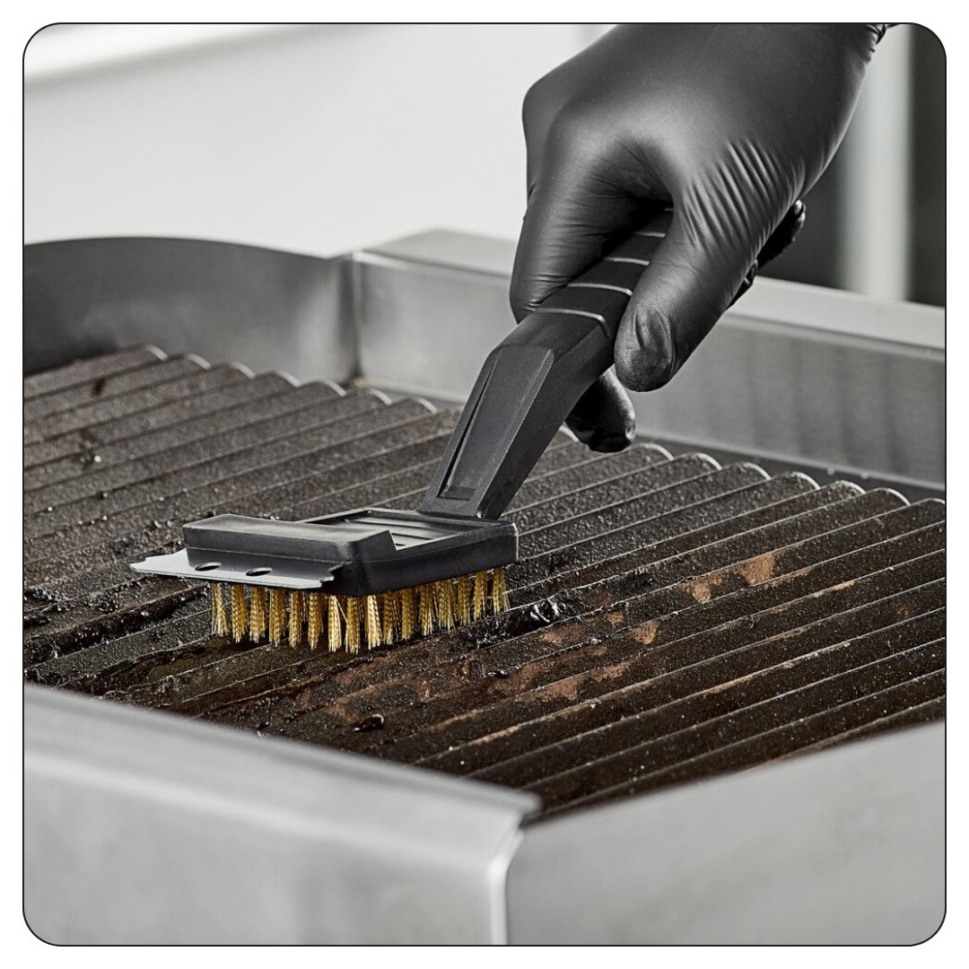 Be the first to review “Brass Bristle Grill / Charbroiler Brush with Scraper 10 1/2″”