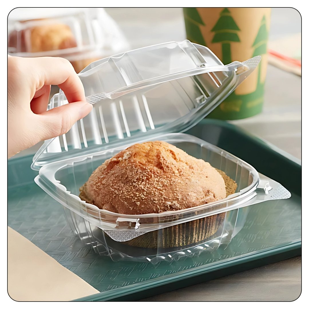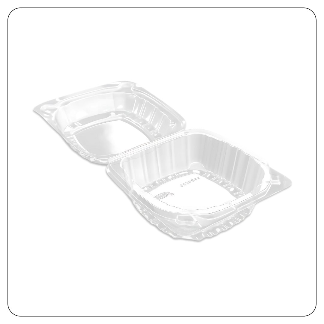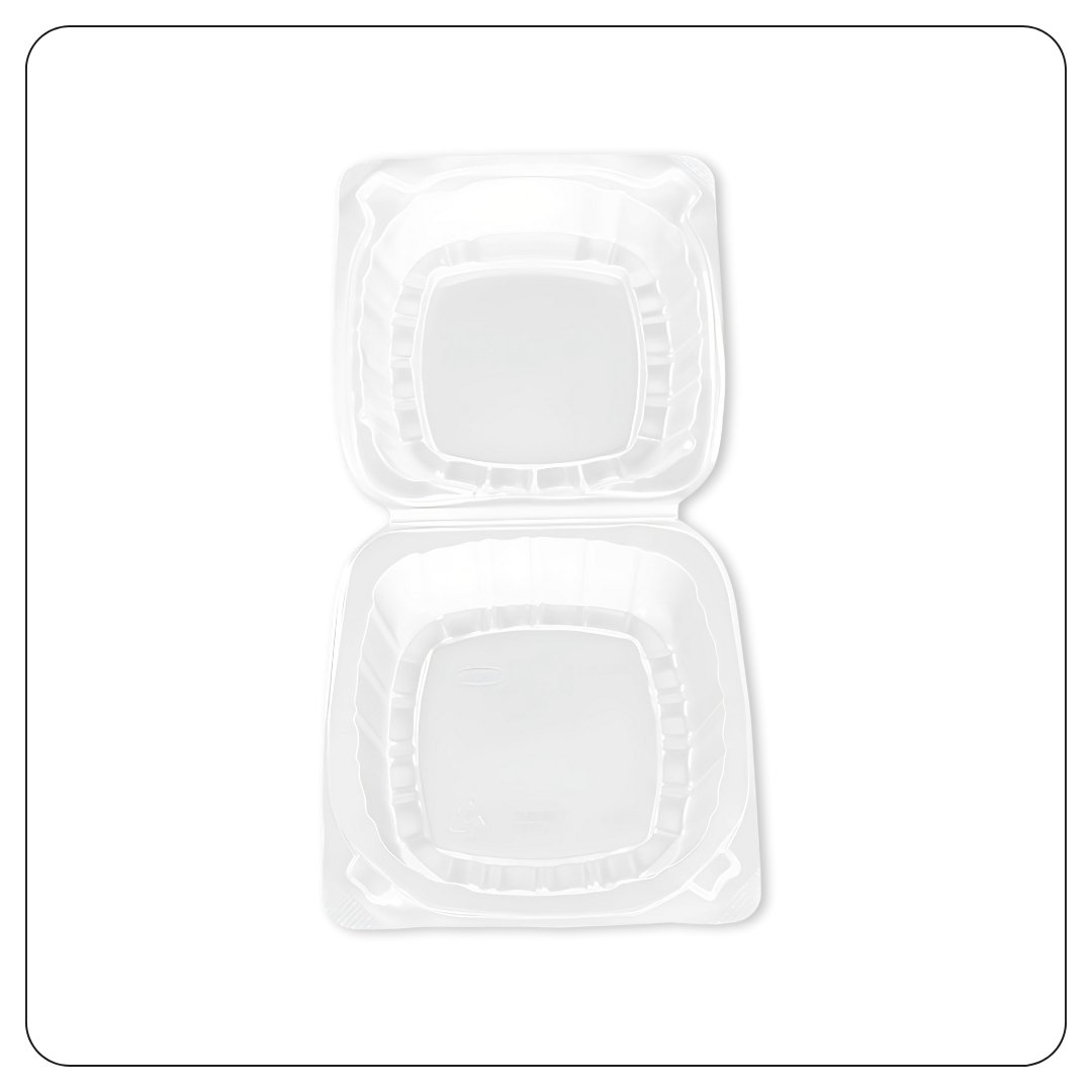 Hinged Lid Plastic Container Clear 6″ x 5 13/16″ x 3″