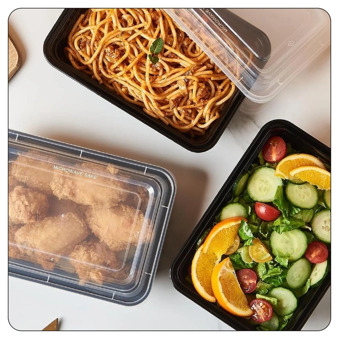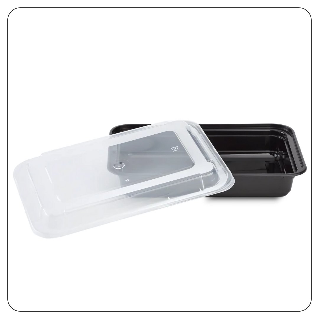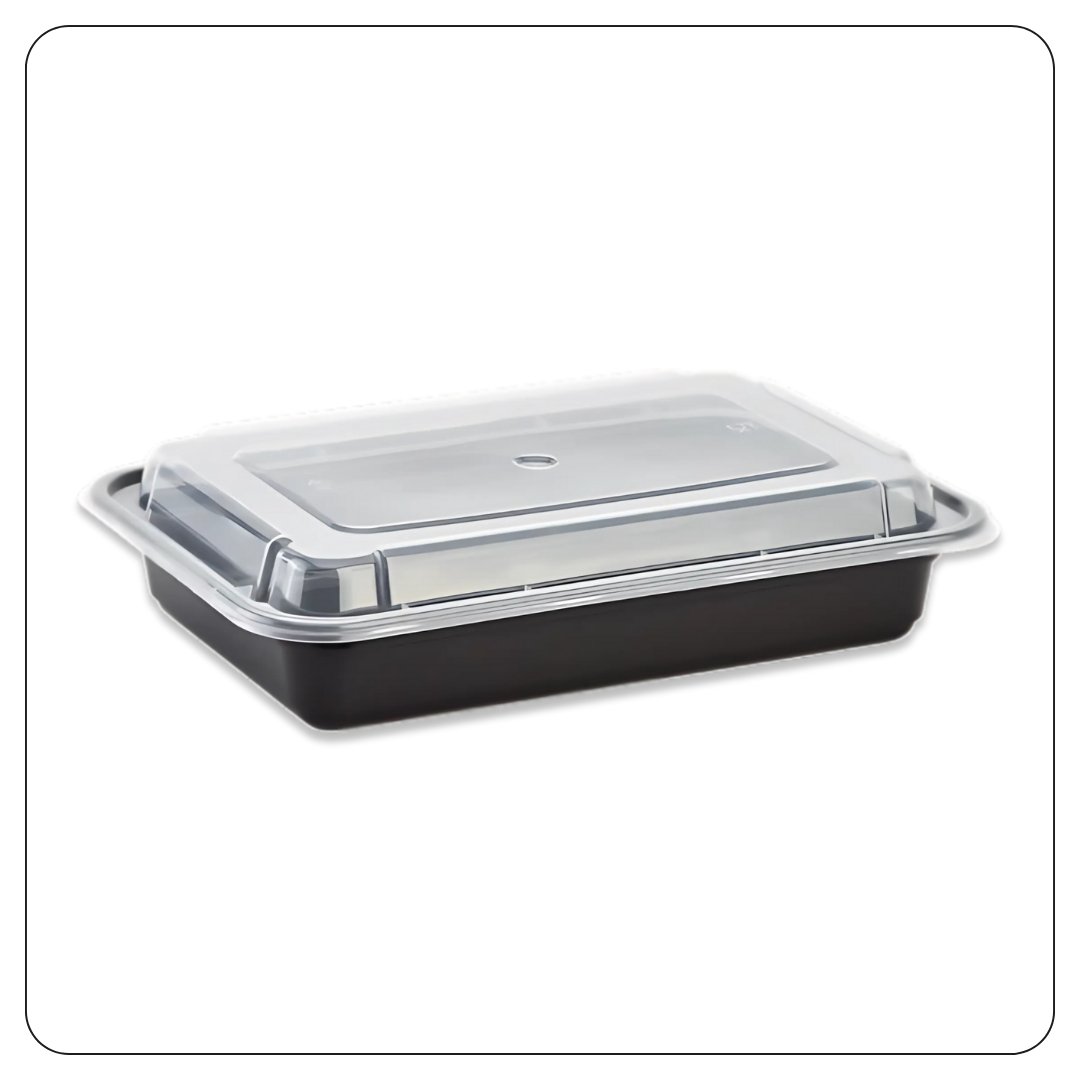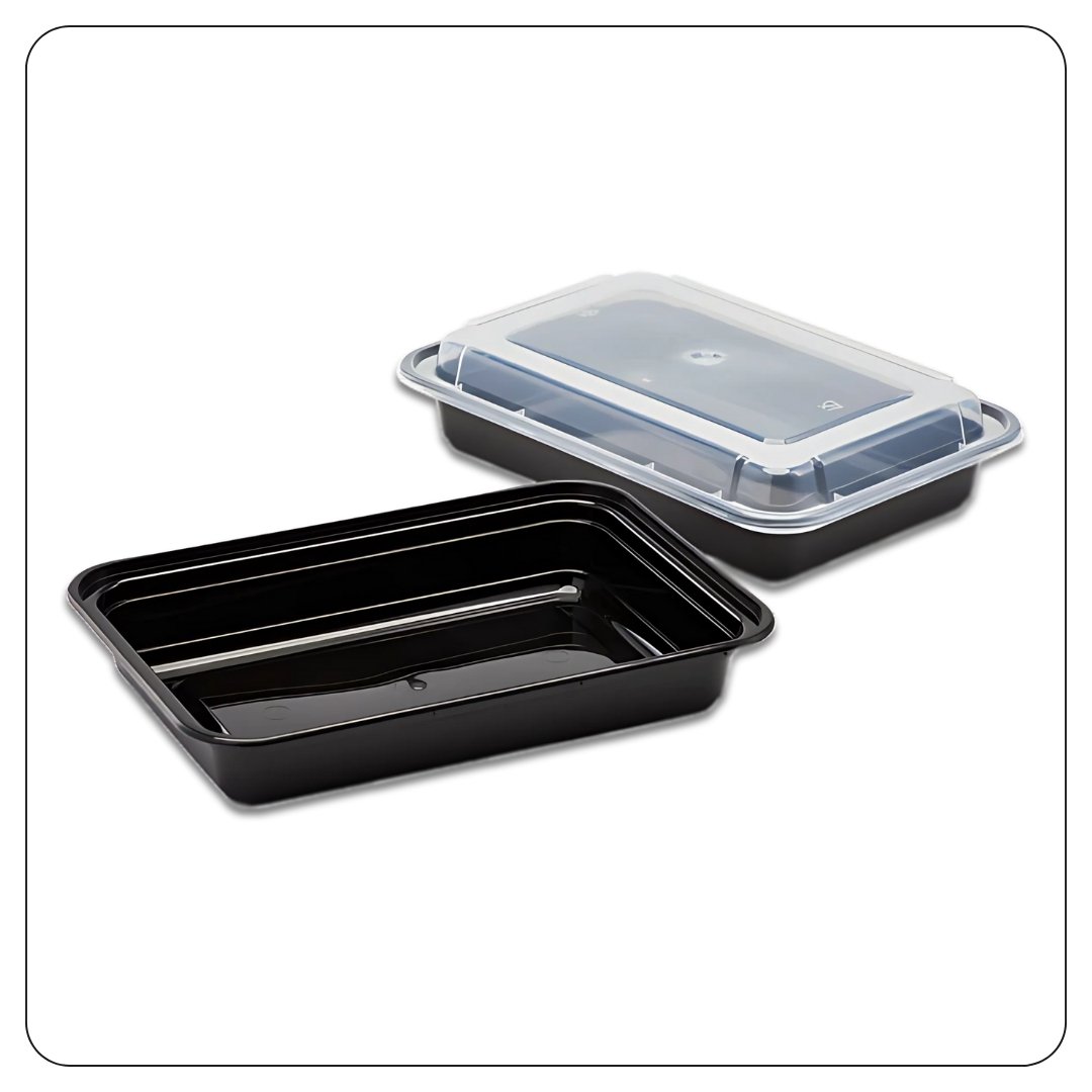 Microwaveable Rectangular Black Food Containers 32 Oz With Lids